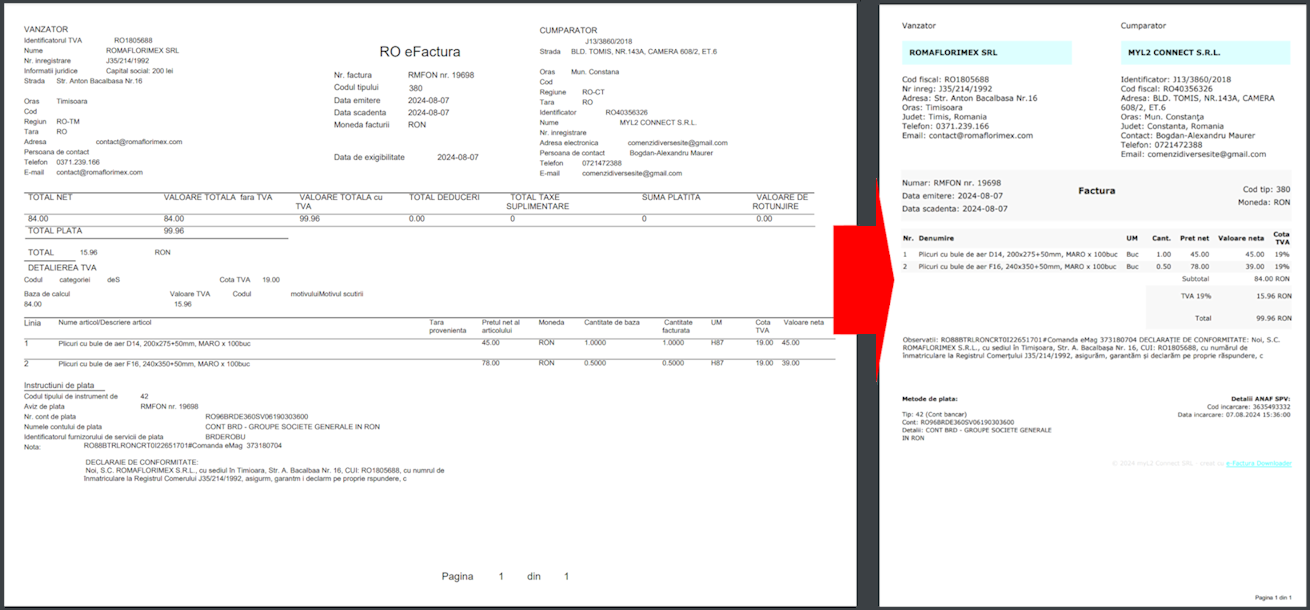 - Convertor XML → PDF inclus